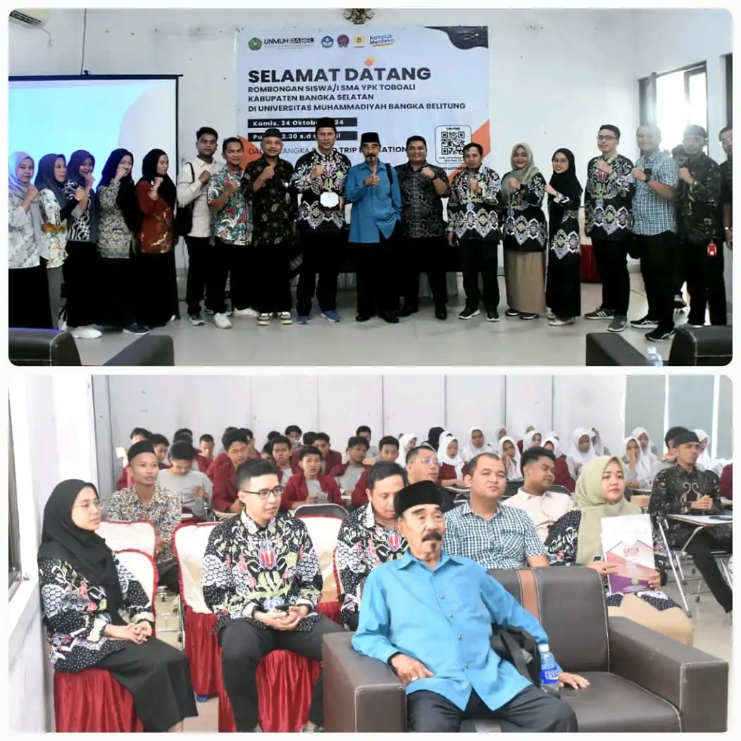 PANGKALAN BARU, infoupdate.co – Universitas Muhammadiyah Bangka Belitung (Unmuh Babel) mendapat kunjungan dari SMA Swasta YPK Toboali kabupaten Bangka Selatan dalam rangka “Field Trip Education, di gedung Babel, Kamis (24/10/24). Kunjungan tersebut disambut hangat oleh Wakil Rektor 2 Unmuh Babel, Gatot Afrianto, S.Sos.I., M.Pd., bersama jajaran Ketua Program Studi, dan dosen di lingkungan kampus.