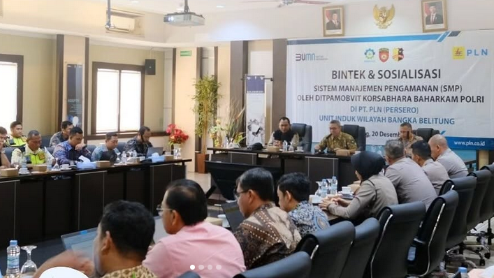 PANGKALPINANG, infoupdate.co – PLN Unit Induk Wilayah Bangka Belitung (UIW Babel) bekerja sama dengan Ditpamobvit Korsabhara Baharkam Polri melaksanakan kegiatan bimbingan teknis dan sosialisasi Sistem Manajemen Pengamanan (SMP) di Kantor PLN Babel. Kegiatan ini merupakan wujud komitmen PLN Babel dalam meningkatkan pengelolaan keamanan yang terintegrasi dan profesional, khususnya untuk melindungi aset kelistrikan sebagai bagian dari Objek Vital Nasional (Obvitnas).