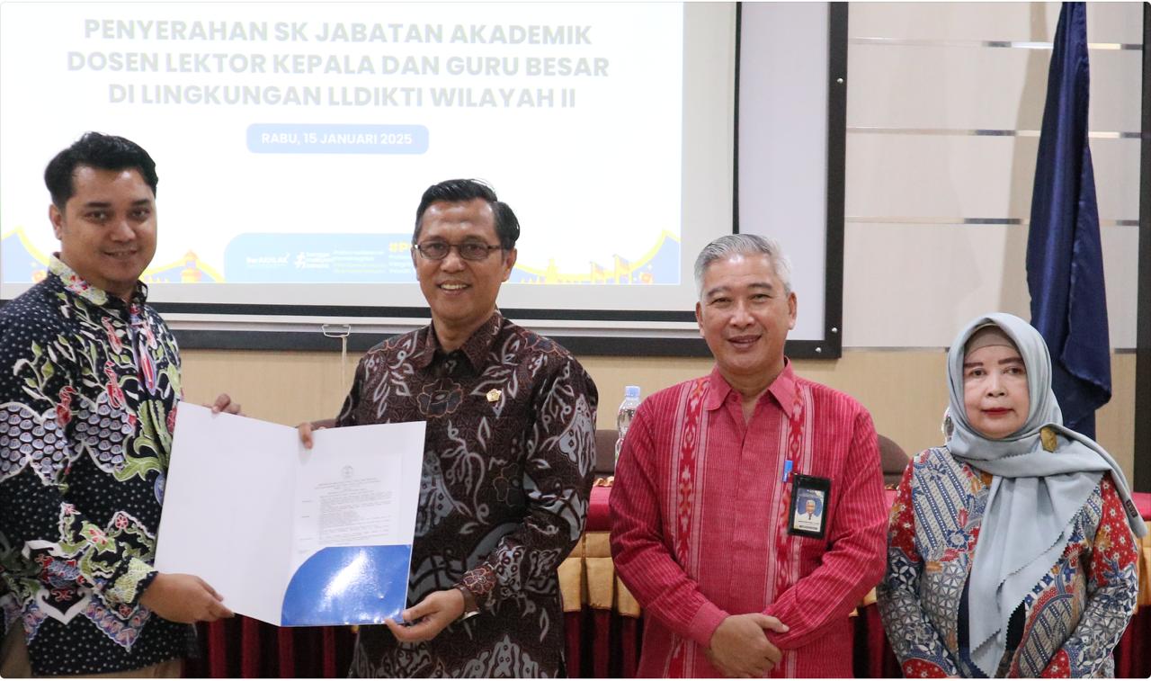 BANGKA TENGAH, infoupdate.co – Dosen PJKR Universitas Muhammadiyah Bangka Belitung (UNMUH Babel), Muhammad Eka Mardyansyah Simbolon, M.Pd. yang juga menjabat Kepala Divisi Pengabdian kepada Masyarakat (PkM), baru-baru ini mencapai jabatan penting dalam karier akademiknya. Akrab disapa Eka, dosen PJKR ini menerima secara langsung SK Lektor Kepala dari Kepala Lembaga Layanan Pendidikan Tinggi (LLDIKTI) Wilayah II, Prof. Dr. Iskhaq Iskandar, M.Sc., pada Rabu, 15 Januari 2025 seperti dilansir https://unmuhbabel.ac.id.
