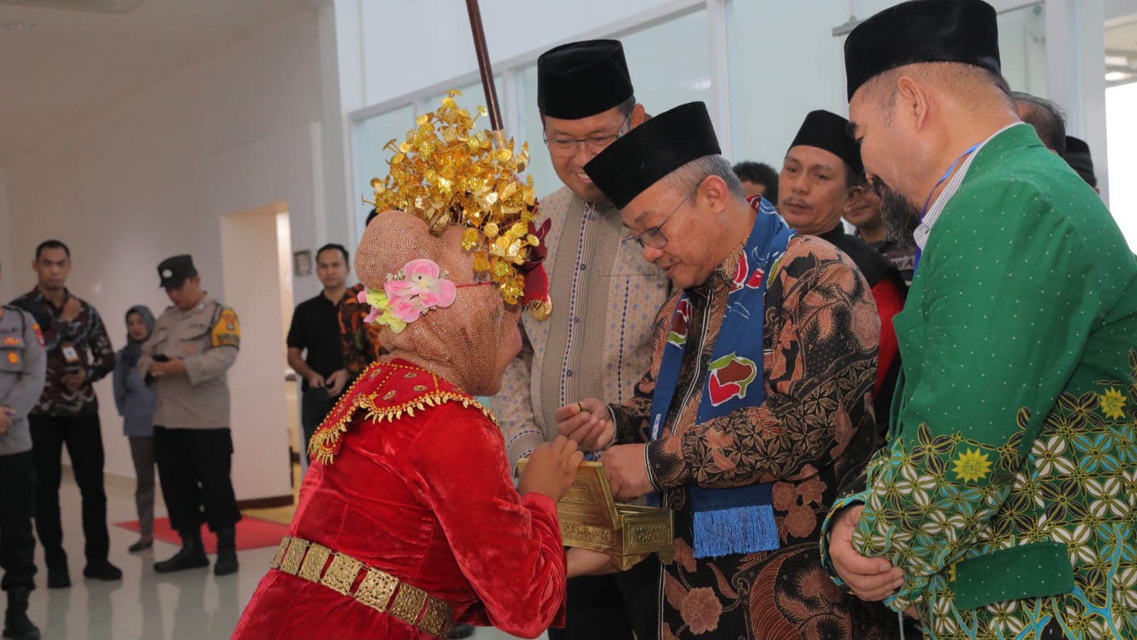 “Selamat datang di Provinsi Kepulauan Bangka Belitung Pak Menteri,” ujar Pj. Gubernur Sugito seraya mengalungkan selendang cual kepada Mendikdasmen Abdul Mu’ti.