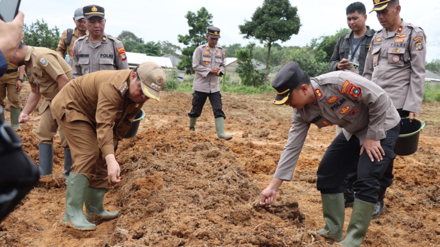 PANGKALPINANG, infoupdate.co – Pemerintah Kota (Pemkot) dan Polresta Pangkalpinang berkolaborasi dalam mendukung program Swasembada Pangan Nasional Tahun 2025. Upaya tersebut ditunjukkan dengan melakukan penanaman jagung di lahan milik Polresta Pangkalpinang seluas 1 hektar yang dimulai Selasa (21/01/25), di Kelurahan Air Kepala Tujuh.