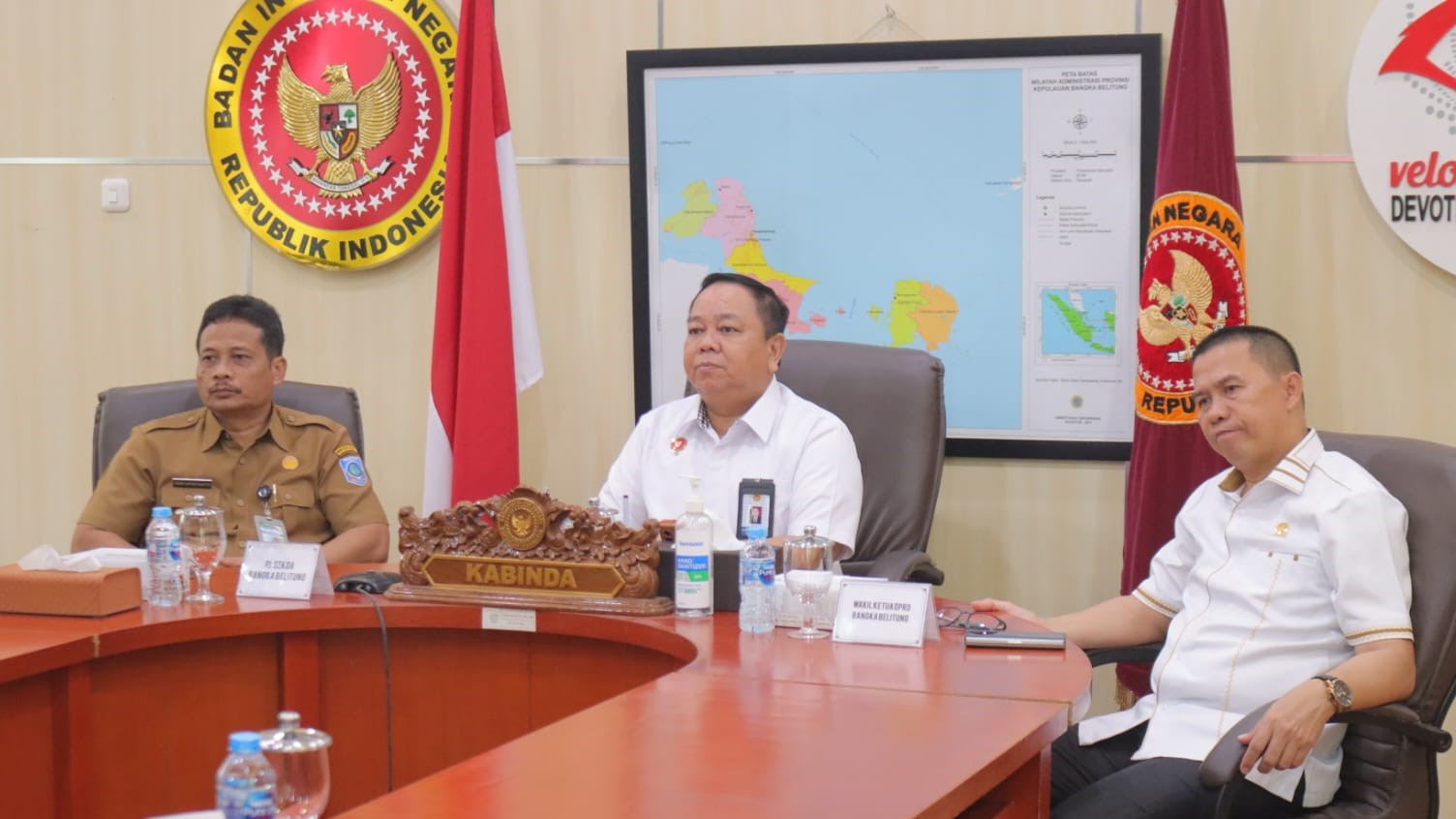 Sekretaris Daerah (Sekda) Kep. Babel Fery Afriyanto, Kepala Badan Intelijen Daerah (Kabinda) Kep. Babel Jusak Tarigan, dan Wakil Ketua DPRD Babel Eddy Iskandar, turut mengikuti rapat koordinasi bersama leading sektor terkait secara virtual, dalam rangka pemberian makan bergizi, di Ruang Vidcon Kantor BIN Daerah Kep. Babel, Selasa (4/1/2025).