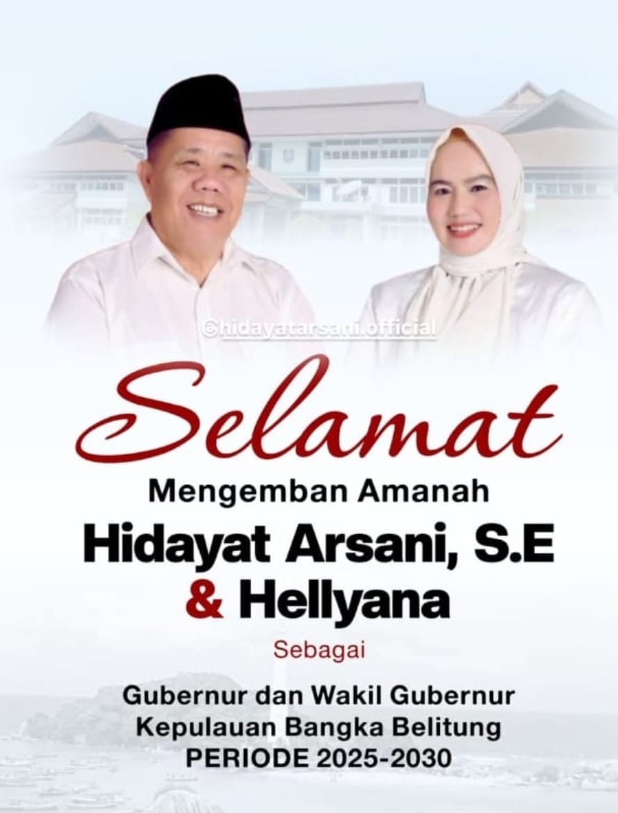 PANGKALPINANG, infoupdate.co — Komisi Pemilihan Umum (KPU) Provinsi Kepulauan Bangka Belitung (Babel) telah menetapkan Hidayat Arsani dan Hellyana, sebagai Gubernur dan Wakil Gubernur Babel Terpilih periode 2024-2029.  Penetapan ini dilakukan dalam Rapat Pleno Terbuka  yang  digelar di Hotel Grand Safran, Selasa (25/02/2025).
