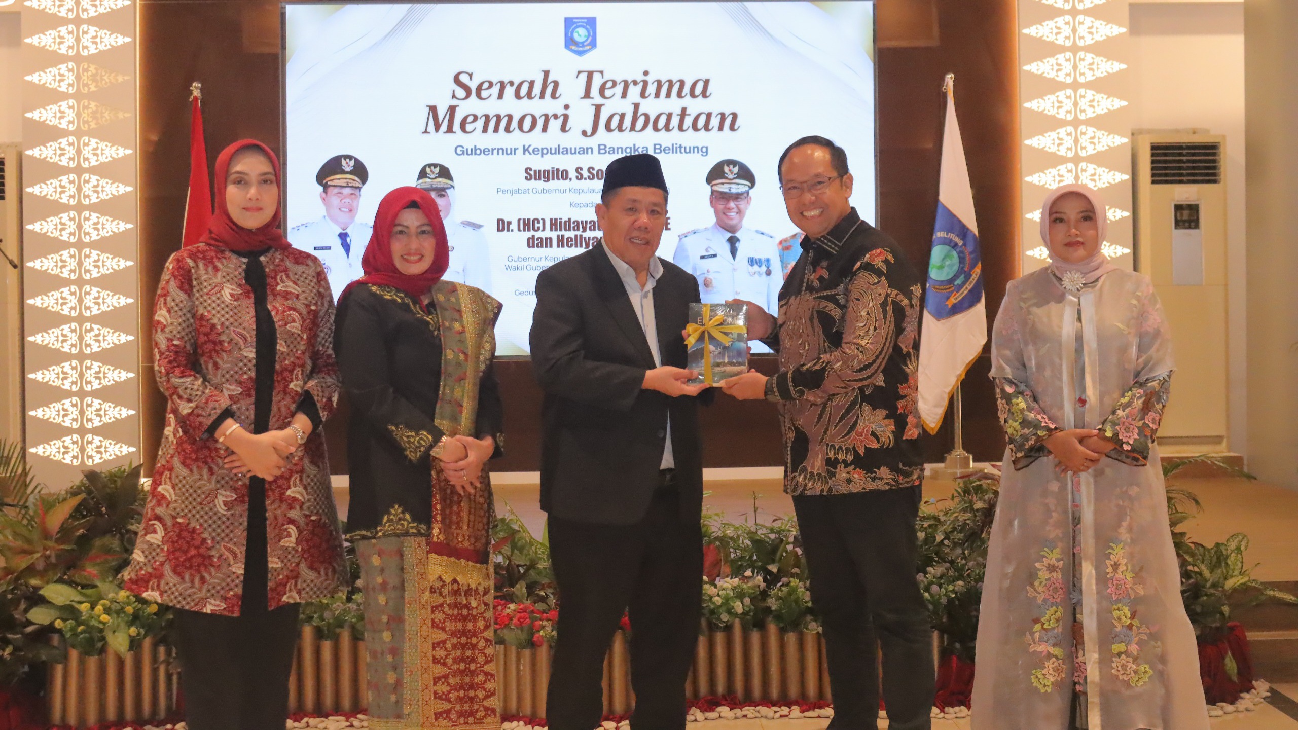 Pada kesempatan itu juga dilakukan penyerahan buku Transformasi Ekonomi: Mengelola SDA Babel Berkelanjutan dari Pj. Gubernur Sugito kepada Gubernur Hidayat. Sementara istri Pj. Gubernur, Dya Sugito menyerahkan buku PKK dan BKOW kepada Noni Hidayat Arsani, istri Gubernur.