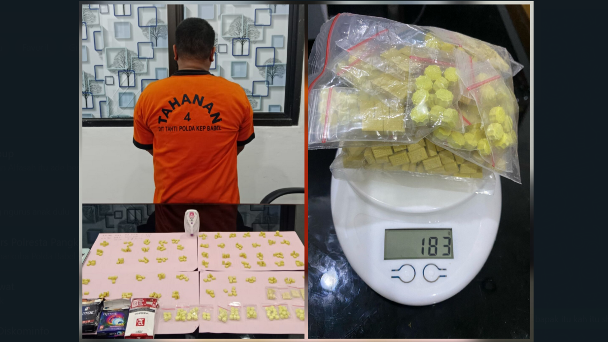 Kabid Humas Polda Babel, Kombes Pol Fauzan Sukmawansyah membenarkan penangkapan tersebut. Ia menjelaskan bahwa pelaku diamankan pada Sabtu, 19 April 2025, dengan barang bukti sebanyak 427 butir pil ekstasi seberat bruto kurang lebih 183 gram.