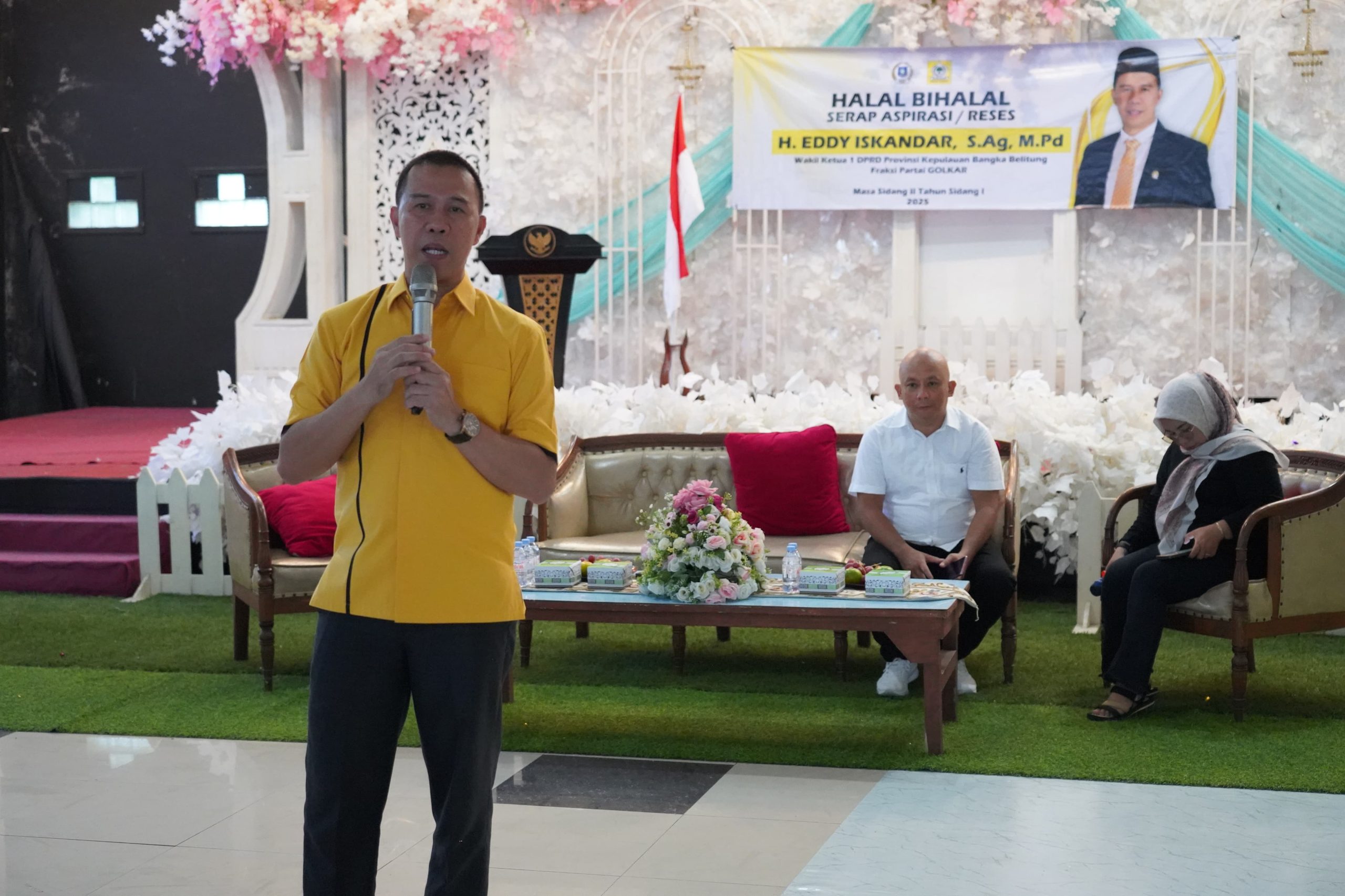 PANGKALPINANG, infoupdate.co – Wakil Ketua DPRD Provinsi Kepulauan Bangka Belitung Eddy Iskandar menggelar kegiatan reses yang dirangkaikan dengan acara halal bihalal bersama masyarakat Kecamatan Rangkui, Minggu pagi (18/5). Kegiatan tersebut berlangsung di Gedung Cendana Pangkalpinang, dan dihadiri oleh berbagai elemen masyarakat, tokoh agama, tokoh pemuda, serta ibu-ibu majelis taklim.