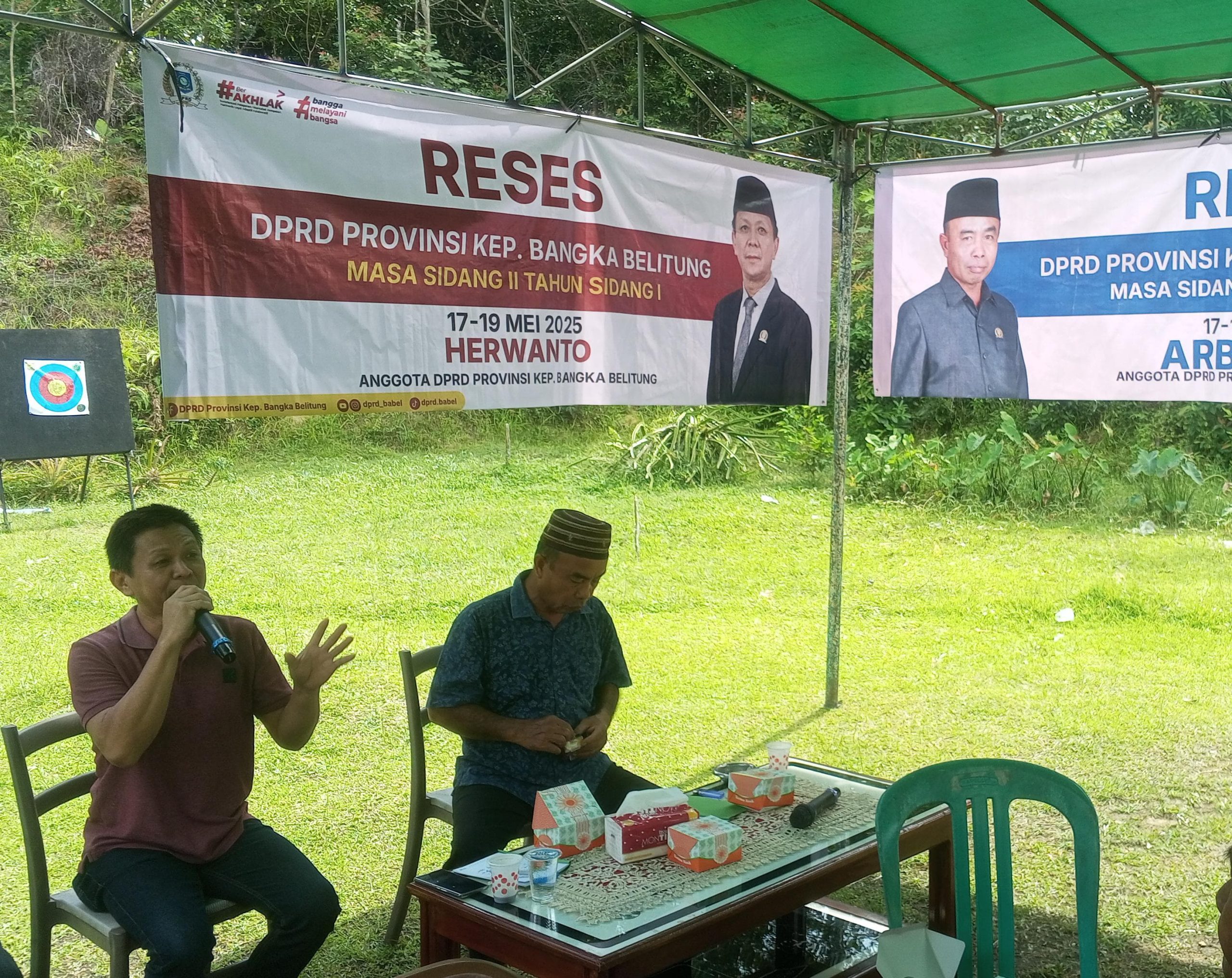 MENTOK, infoupdate.co – Dua Anggota DPRD Provinsi Kepulauan Bangka Belitung, Herwanto dan Arbiyanto menunjukkan sinergi dalam memperjuangkan kepentingan rakyat melalui kegiatan reses bersama yang digelar di Desa Air Belo, Kabupaten Bangka Barat, pada Minggu (18/5/2025). Kegiatan ini menjadi wadah silaturahmi sekaligus sarana menyerap langsung aspirasi masyarakat di daerah pemilihan mereka.