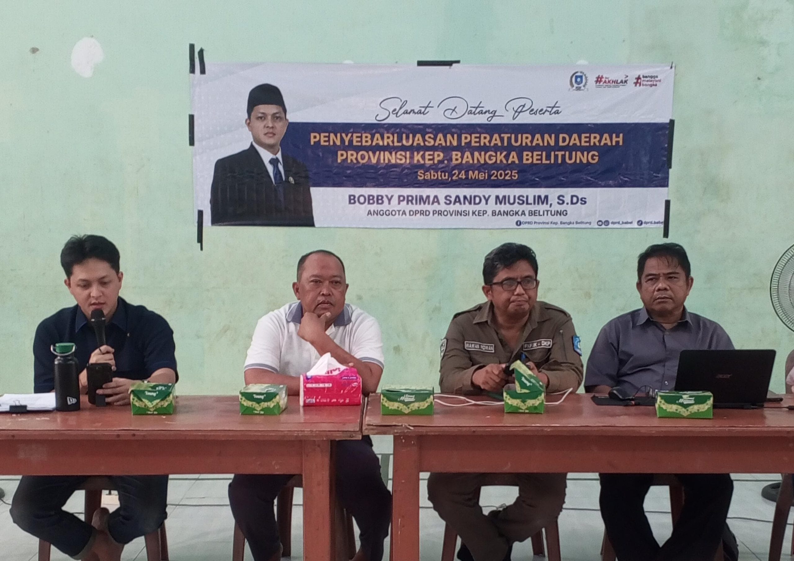 KELAPA, infoupdate.co – Dalam upaya meningkatkan pemahaman dan kepatuhan masyarakat terhadap regulasi daerah, Anggota DPRD Provinsi Kepulauan Bangka Belitung, Bobby Prima Sandy Muslim menggelar kegiatan sosialisasi Peraturan Daerah (Perda) Nomor 03 Tahun 2020 tentang Rencana Zonasi Wilayah Pesisir dan Pulau-Pulau Kecil (RZWP3K) Provinsi Kepulauan Bangka Belitung Tahun 2020-2040, pada Sabtu (24/05/2025) di Desa Pusuk, Kabupaten Bangka Barat.