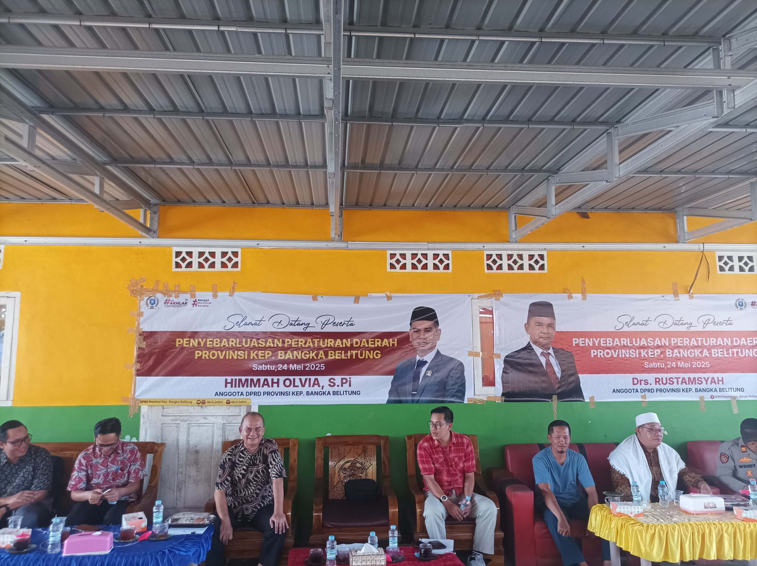 MENDOBARAT, infoupdate.co – Wakil Ketua dan Anggota Komisi II DPRD Provinsi Kepulauan Bangka Belitung, Himmah Olivia dan Rustamsyah melaksanakan kegiatan penyebarluasan informasi Perda No. 13 Tahun 2017 tentang Pemberdayaan Koperasi dan UMKM serta Perda No. 19 Tahun 2019 tentang Penataan Usaha Perkebunan Kelapa Sawit di Desa Petaling, Kecamatan Mendo Barat, Kabupaten Bangka, Sabtu (24/05/2025).