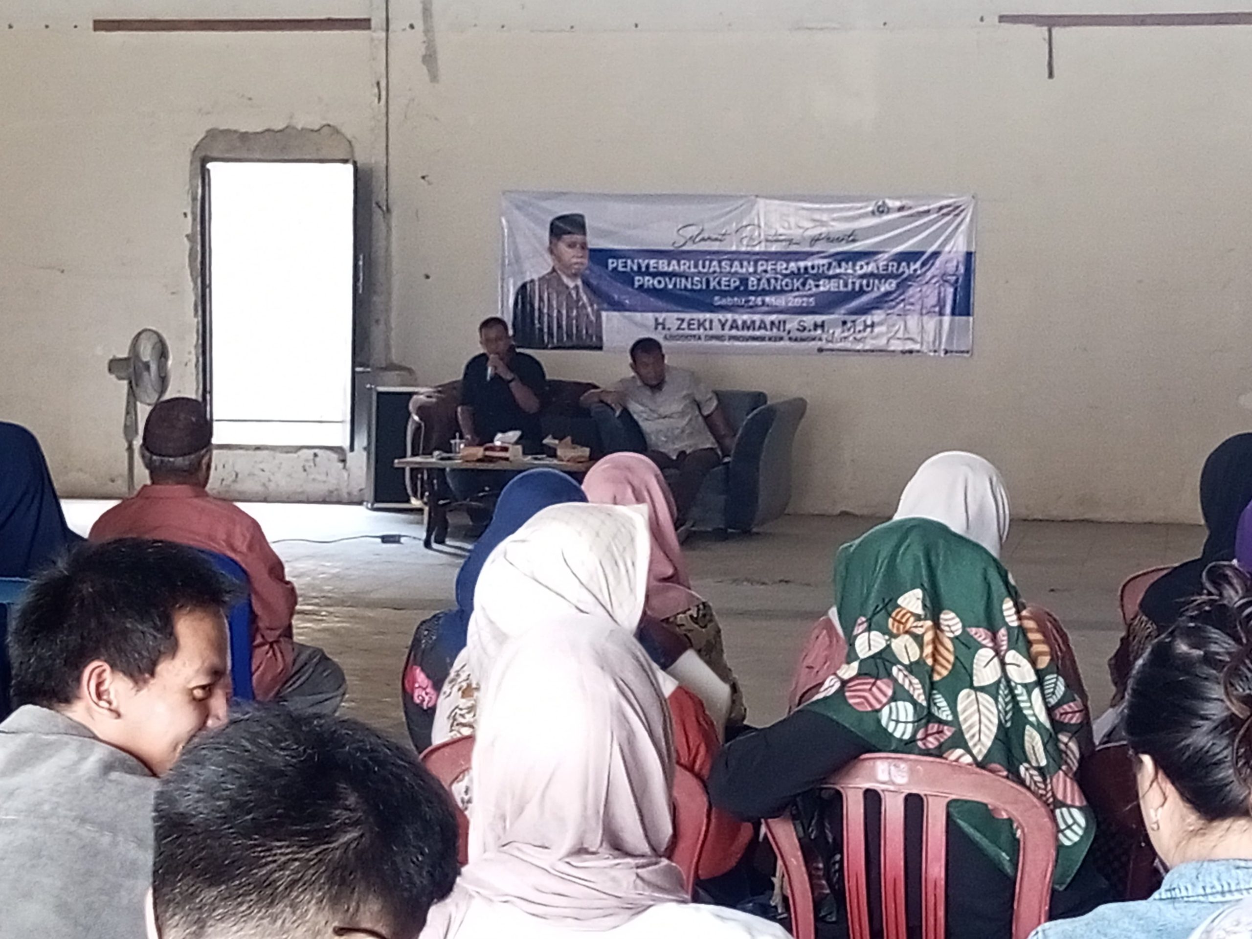 PANGKALAN BARU, infoupdate.co – Anggota DPRD Provinsi Kepulauan Bangka Belitung, Zeki Yamani menggelar kegiatan Penyebarluasan Peraturan Daerah (Perda) Nomor 07 Tahun 2014 tentang Pengelolaan Pertambangan Mineral. Kegiatan ini berlangsung pada Sabtu siang, pukul 13.00 WIB, di Gedung Eks Angel Wings, Jalan Raya Koba No. 28, Kelurahan Dul, Kecamatan Pangkalan Baru, Kabupaten Bangka Tengah.