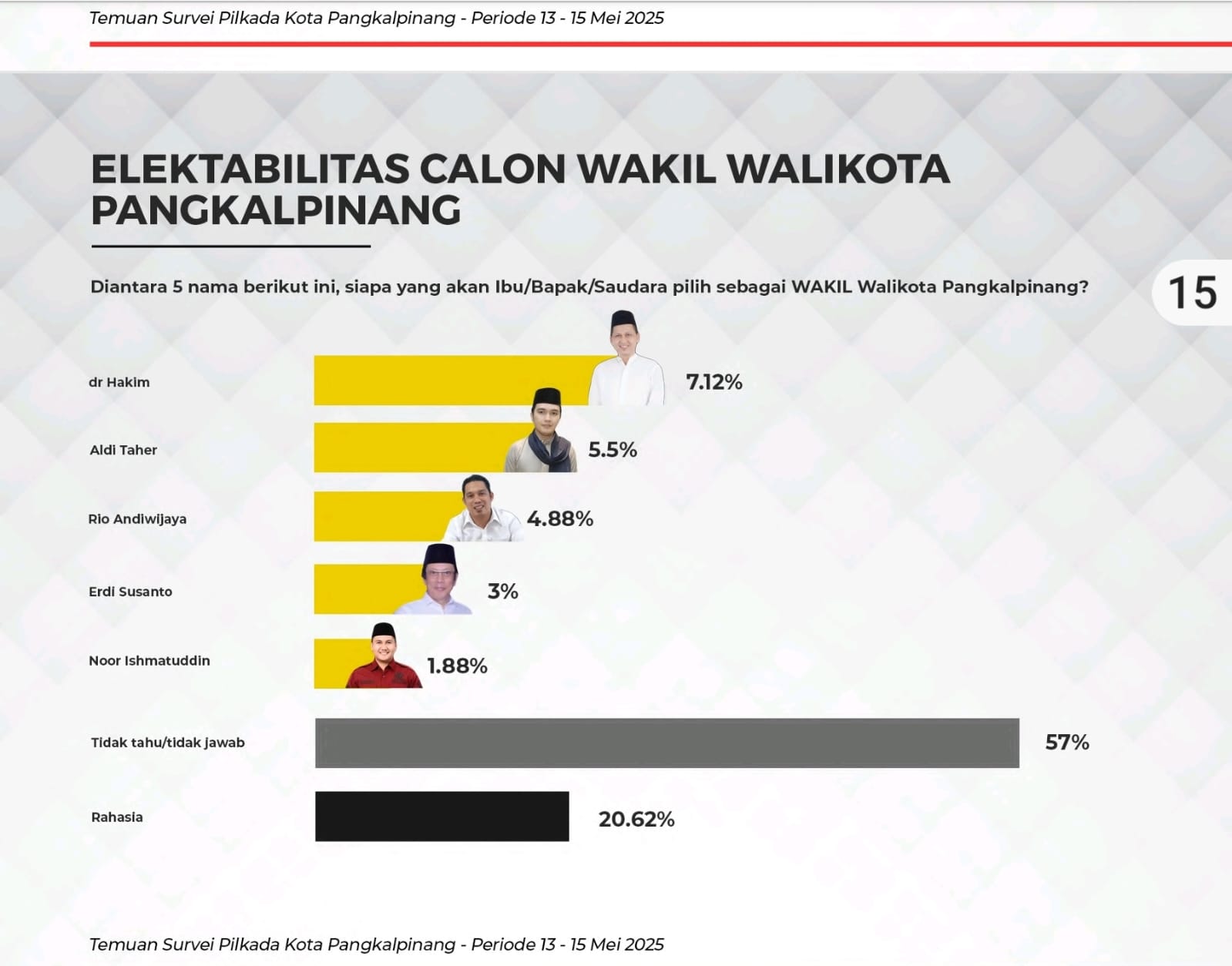Wajar saja, jika jelang Pilkada Ulang Kota Pangkalpinang bermunculan survei yang menyebutkan nama dr Hakim semakin melejit meninggalkan bakal calon lainnya.