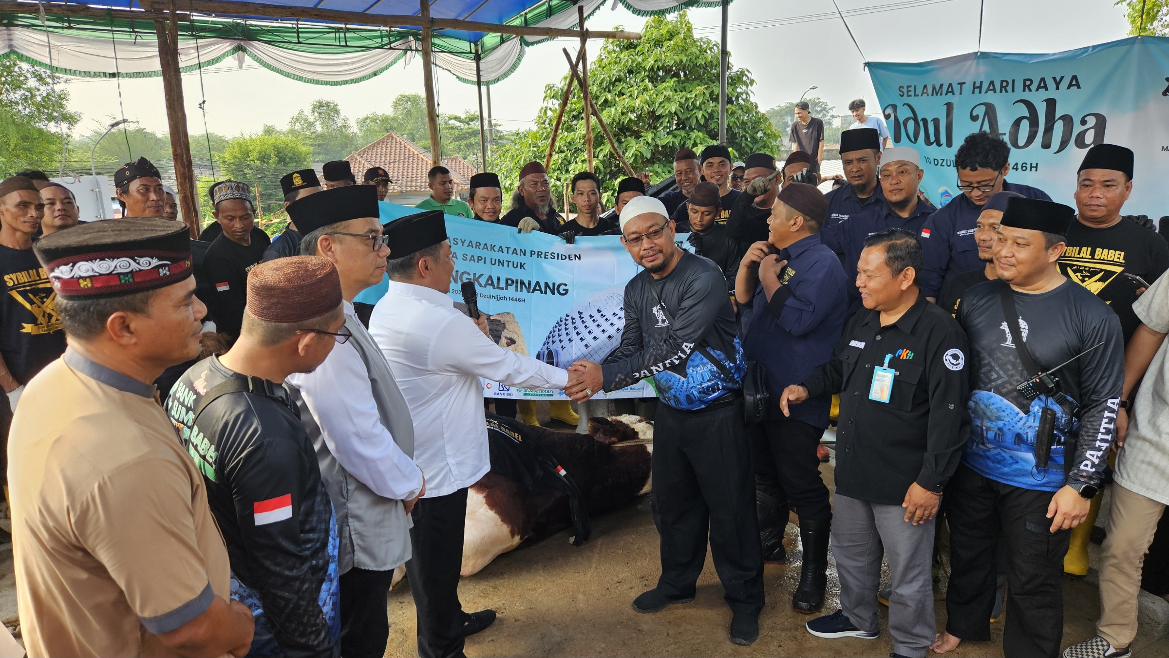Total 11 ekor sapi dan 11 ekor kambing diserahkan dalam kesempatan tersebut, termasuk satu ekor sapi dengan berat lebih dari satu ton yang merupakan bantuan langsung dari Presiden dipotong di Masjid Agung Kubah Timah. Bantuan hewan kurban juga berasal dari berbagai sponsor seperti Kapolda Kepulauan Bangka Belitung, PT Timah Tbk, lembaga perbankan, serta sejumlah perusahaan swasta lainnya.