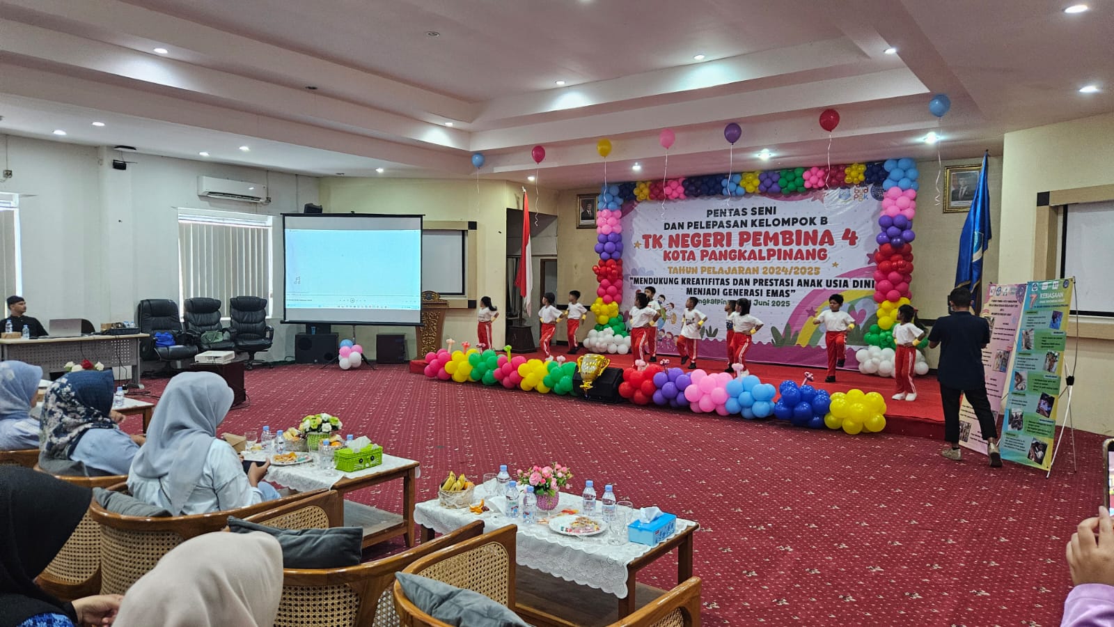 PANGKALPINANG, infoupdate.co — Acara Pentas Seni dan Pelepasan Kelompok B TK Negeri Pembina 4 Pangkalpinang berlangsung meriah di Balai Besar Betason (OR) Kantor Wali Kota Pangkalpinang, Selasa (17/6/2025). Kegiatan bertema “Mendukung Kreativitas dan Prestasi Anak Usia Dini Menuju Generasi Emas” ini dihadiri langsung oleh Asisten Pemerintahan dan Kesra Setdako Pangkalpinang, Akhmad Subekti, yang mewakili Pj Wali Kota.