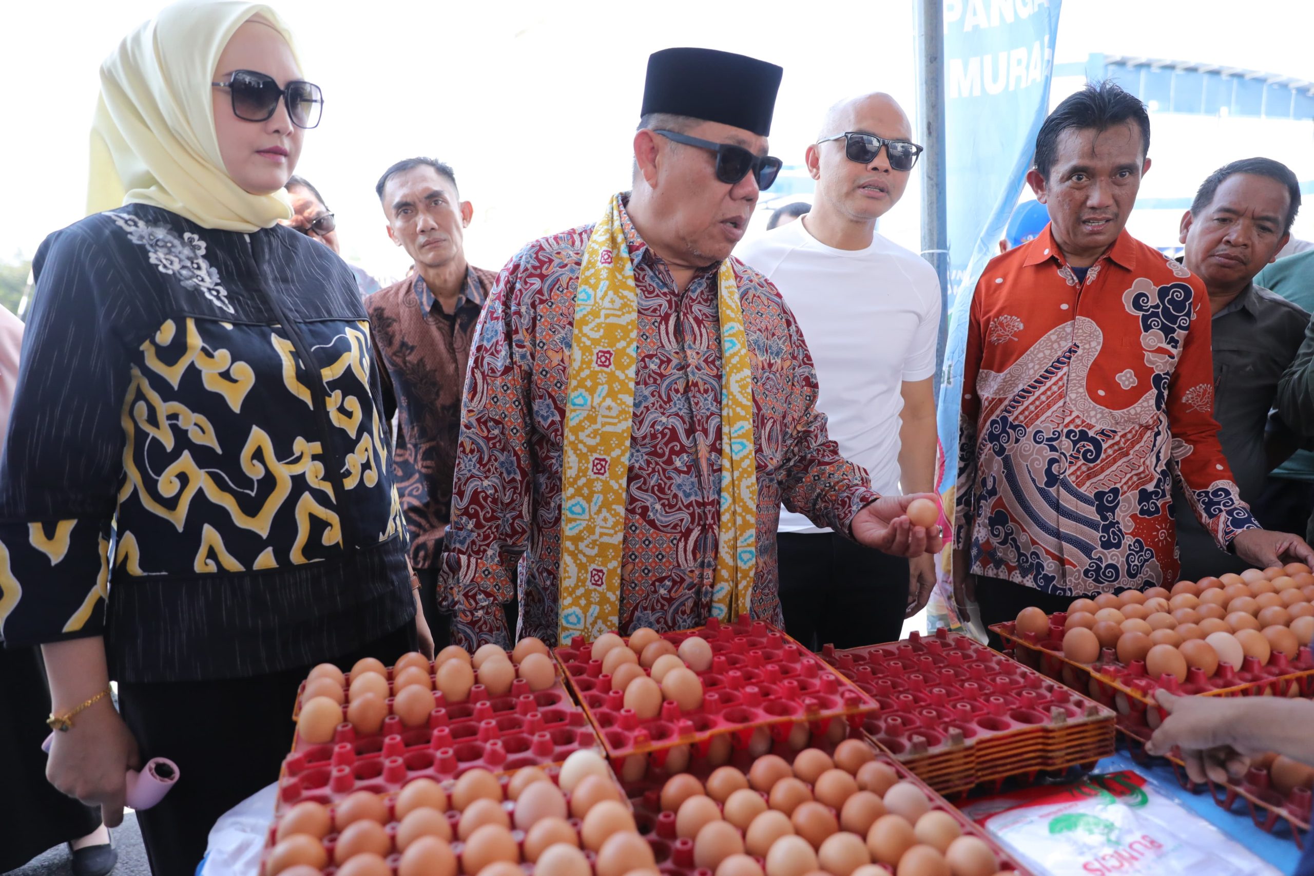 Usai memberikan sambutan, Gubernur Hidayat beserta rombongan meninjau langsung stand-stand bazar yang menjajakan berbagai kebutuhan pokok dengan harga murah.