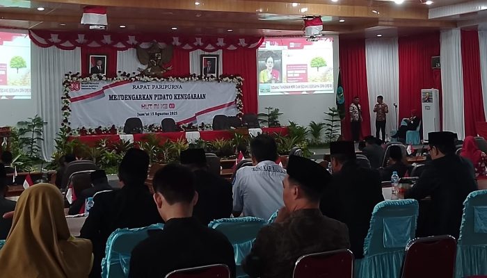 BANGKA, infoupdate.co – Suasana khidmat menyelimuti rapat paripurna DPRD Kabupaten Bangka saat para wakil rakyat bersama jajaran Forkopimda dan berbagai unsur masyarakat menyimak pidato kenegaraan Presiden Republik Indonesia dalam rangka peringatan HUT ke-80 Kemerdekaan RI, Jumat (15/8/2025).