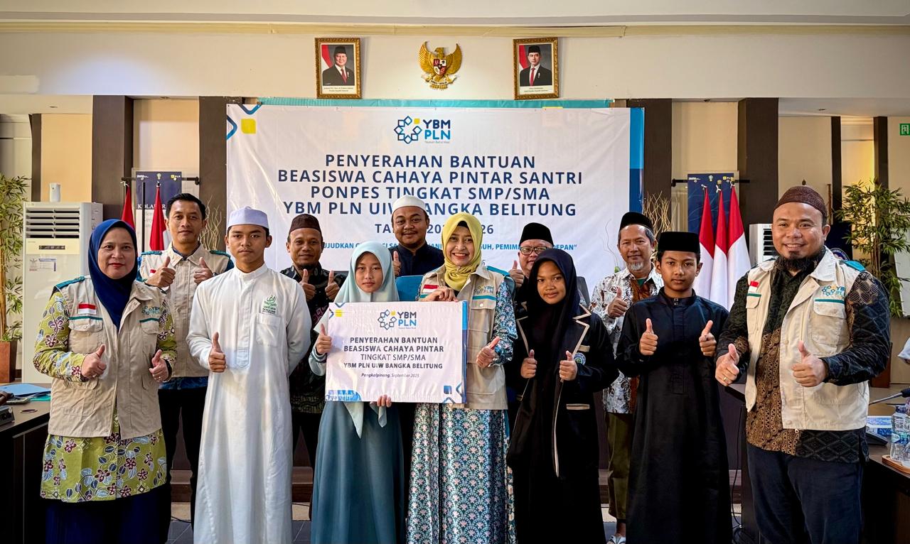 PANGKALPINANG, infoupdate.co – Yayasan Baitul Maal (YBM) PLN Unit Induk Wilayah (UIW) Bangka Belitung kembali menyalurkan bantuan pendidikan melalui program Beasantri Cahaya Pintar kepada 12 santriwan dan santriwati dari keluarga kurang mampu. Penyerahan beasiswa ini digelar dalam seremoni sederhana di Kantor PLN UIW Babel, dan diserahkan langsung oleh General Manager PLN UIW Babel sekaligus Pembina YBM PLN Babel, Ira Savitri, Manajemen dan YBM PLN Babel, kepada pimpinan pondok pesantren dan santri yang menerima beasiswa.