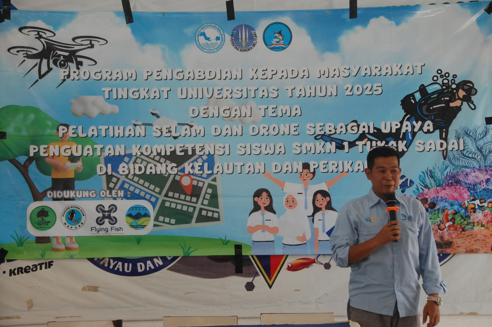Kegiatan ini mengusung tema “Pelatihan Selam dan Drone sebagai Upaya Penguatan Kompetensi Siswa SMKN 1 Tukak Sadai di Bidang Kelautan dan Perikanan.”